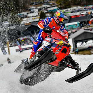 On Saturday, Triple Crown Round 14, Peterson started the day off with good qualifying, allowing him to line up in the fifth place spot for Round 1. On the line for the Triple Crown Round 1, Peterson shot out of the gates on his Team LaVallee, Polaris, Red Bull sled but was caught in a mess of sleds in the first corner and came out towards the back of the pack. But as the clock was winding down, Peterson’s momentum was speeding up and was able to pass his way up to the impressive 5th place spot!