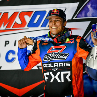 On Saturday, Bester was ready to put the pressure on again for Round 2. Bester started the day with great qualifying rounds, taking a 1st and 4th which allowed him a nice gate pick for the Pro Lite Round 2 Final. Off of the line, Bester on his Polaris, Red Bull, Walker Evans Racing sled ripped out of the gate and was at the front of the pack. With riding smooth and consistent lap times, Bester earned himself his first podium of the 2022 season, with an excellent 3rd place finish! “All I was just trying to do was focus on that (green) light,” said Bester. “That’s one of the biggest things in this Pro Lite class, that starts are key, so I was just all focused on that light, and I hit it right on, so it was awesome."